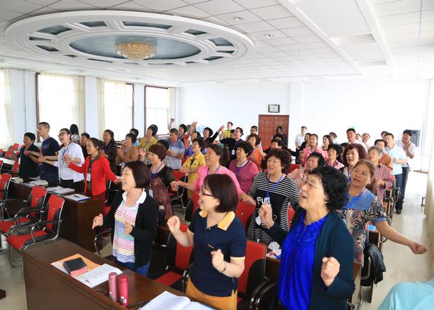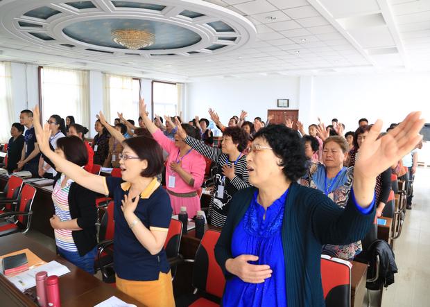 这一幕发生于金灯台领导力事工日前在普兰店义工培训中心为当地农村教会领袖举办的属灵领袖培训班上。培训正式开始前,讲员之一梁培建牧师携音乐事工号角团队先带领农村同工们来了一场赞美会,预备他们的心田。