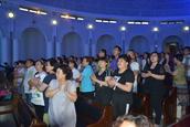 本次赞美会除了精彩的赞美与分享,还有两大亮点,一个是呼召慕道友决志归主,近30人走到台前回应呼召;另一个是向愿意参加服侍者发出呼召,近45人填写报名报表。