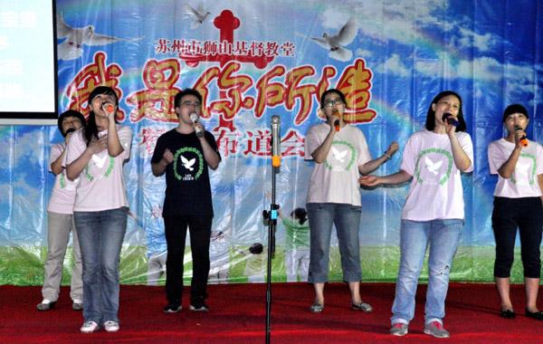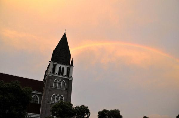 圣经里清楚记载着关于神与彩虹的立约:“我把虹放在云彩中,这就可作我与地立约的记号了。”(创世记9:13);“下雨的日子,云中虹的形状怎样,周围光辉的形状也是怎样。这就是耶和华荣耀的形像。”(以西结书1:28)。而7月5日苏州狮山堂一年一度的夏季赞美布道会就在这美丽的彩虹下如期举行。