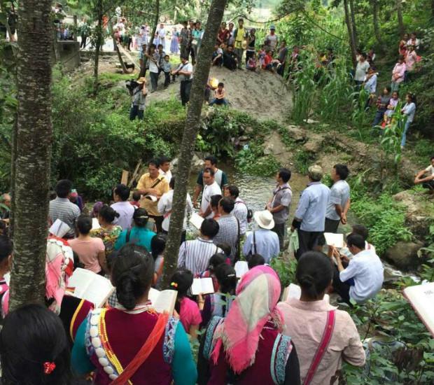 7月6日,福贡县鹿马登乡基督教会教务组在麻甲底河边举行洗礼,共有57人受洗。