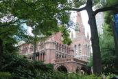 上海外滩附近,从南京路向外滩向西、向南走十分钟,在九江路、江西路、汉口路包围的绿树丛中,都可以看到一座高耸的、红色哥特式钟塔。没错,这是圣三一堂的钟塔,十九世纪上海的制高点,最醒目的地标。这座在文化大革命中被破坏的钟楼尖顶,现已修复完毕。
