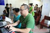 主会场中,蒋牧师正在讲道,而副楼四楼会场的唐太林弟兄也在紧张的忙碌着。作为一名训练有素且经验丰富的速录员,他在网站组参与服事,将礼拜中主持人所说的话和牧师的讲道内容及时快速地记录下来,记录速度几乎与现场同步,现场聋哑人信徒可以通过他所速录的文字同步了解到崇拜的过程和牧师讲道的内容。