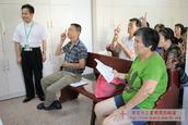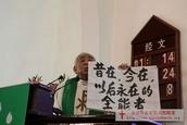 与此同时,聋哑人信徒陈丽荣姊妹在现场担任手语翻译,将屏幕上的文字,翻译成手语,为不识字的信徒服务。