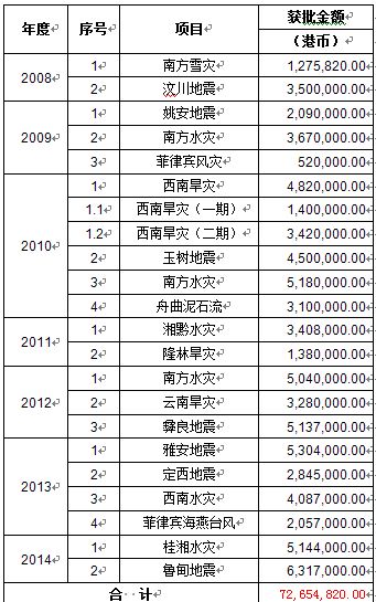 2008-2014香港特区政府支持爱德基金会救灾项目统计表