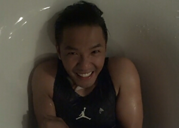 躺在浴池里,妻子范范抱着一桶加有冰块的水候在门口,黑人建州表示“有些紧张”。不过,他还是先清晰地表示自己接受挑战并捐款,并向自己公司的JPM、小乐、王宏恩及JASON等人发出挑战。