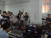祷告会期间,狮山赞美团带领唱诗赞美,整场会众热情高昂,祷告及赞美声响彻礼堂。而溪水堂许永芬姐妹得救经历的见证,让场下掌声赞美不绝于耳,大家都欢呼归荣耀于耶稣基督。结束时,许恩杯、刘治国、钱斌、闫国斌四位牧师共同为弟兄姐妹们祝福。