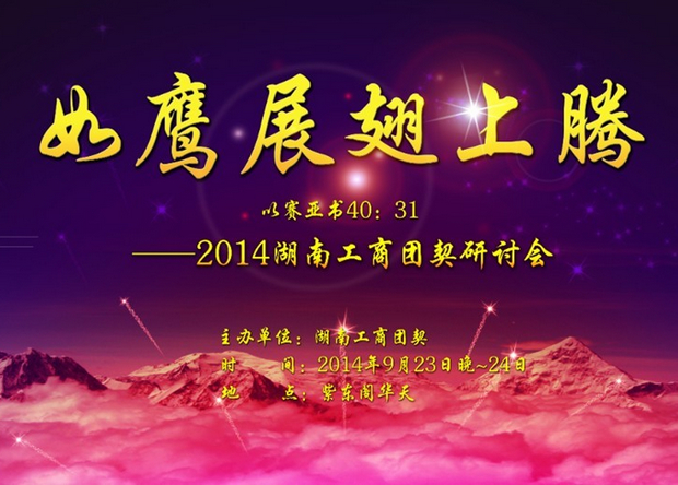 为帮助基督徒企业家清晰各人使命、企业使命,也使教牧同工更关注这个群体的特别需要。湖南工商团契将于9月23日至9月24日于长沙紫东阁华天大酒店主办主题为“如鹰展翅上腾”的研讨会。