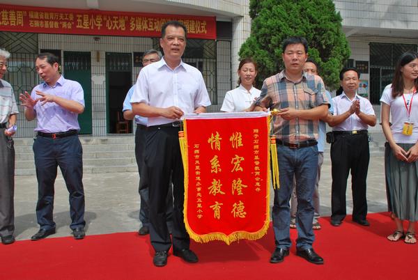 2014年9月19日上午,由福建省石狮市基督教两会奉献12万元,捐建“心天地”多媒体阅读教室仪式在石狮市五星小学举行。福建省教育厅关工委、石狮市政府、石狮市统战部、宗教局和相关单位及石狮市基督教各堂、点负责人出席仪式。