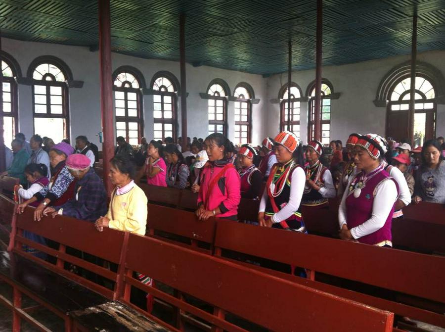 每个主日,信徒们会穿戴整齐,一般会穿上鲜艳的民族服装,到当地的教堂聚会,唱诗班一边唱歌一边跳舞,传道人用傈僳语讲道。
