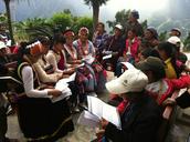 一位弟兄在怒江走访时,参加了当地的主日礼拜,拍下了一组照片。他在微信朋友圈里写道,“周日下午到老姆登村教堂。礼拜后他们在教堂外为下月的感恩节进行合声训练。高山上优美的歌声,在一旁观看的老奶奶们,草地上躺着的小狗,不时敲响的钟声,小女孩为我们献上野花,为怒族姑娘拍人物照,真是忙得不亦乐乎,很舍不得离开。好开心,仿佛在过节。”