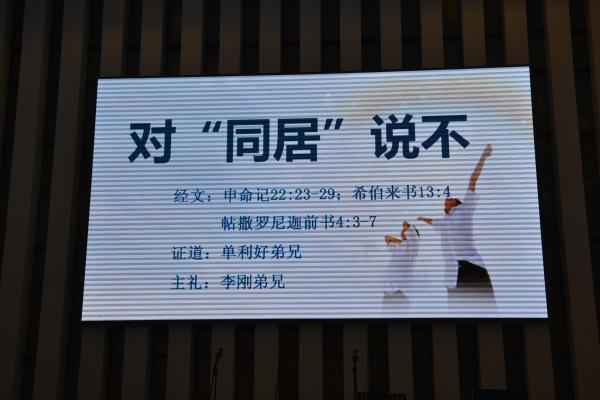 在北京基督教海淀堂的青年聚会上,传道人从圣经真理讲到了同居的问题。第一,婚前同居是犯罪。婚前同居并发生性行为是得罪神,性是神赐予夫妻最美好的礼物,一切婚姻之外的性关系,都是神憎恶的。