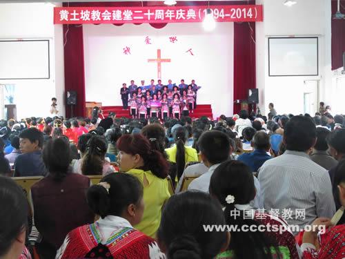 贵州省六盘水市钟山区黄土坡教会于2014年10月1日举行建堂二十周年庆典纪念活动,全市20余个教会中的1000余名弟兄姊妹参加庆典活动。