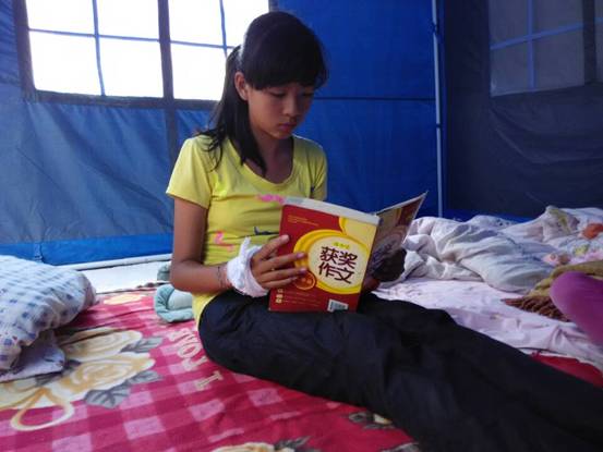 有着美丽大眼睛的小佳是班里的音乐委员,和眼神坚毅的小超同为芒腊村完小六年级的学生。景谷地震后,她们的校舍遭受了破坏。而随着复课时间的临近,爱德救援队为她们带来了“爱的图书室”,让孩子们在震后能够尽快重返课堂学习。在发放现场,爱德救援队的专业人员还为老师和同学们举办了一场防灾减灾的培训。