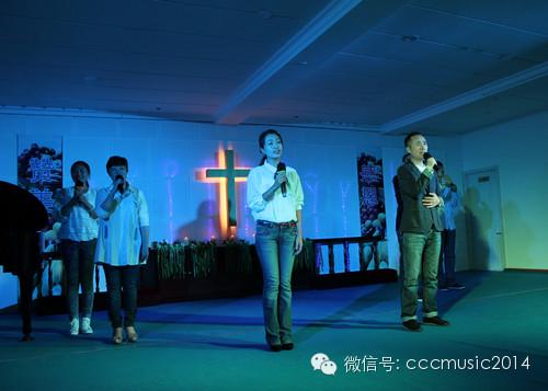 诗班谢幕,主持人登场,他对心泉音乐事工做了简单的介绍:“心如泉水,清澈甘甜,爱如甘露,滋润梦想,用心制作动听音乐,用爱编织生命梦想,用我们的侍奉,谱写心泉的赞美”。虽然心泉的诗歌全由心刚弟兄一人创作,但是这次的赞美会并非一个人的独唱。而是由心泉音乐事工、百合堂两个成人诗班和主日学诗班一起献唱。
