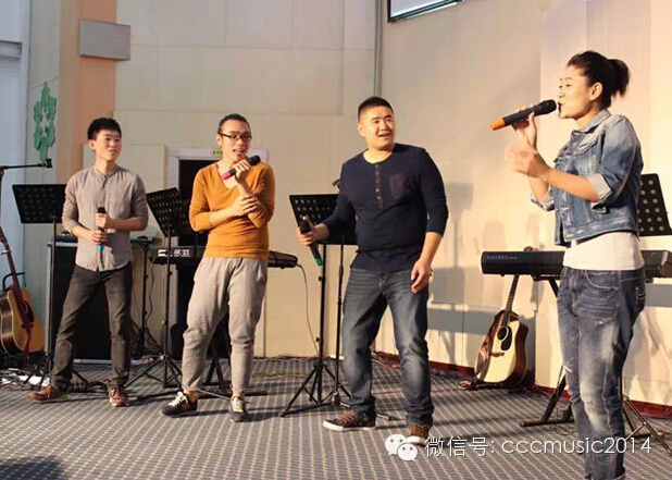 随后,又有两位男生跟着主唱一起上场,会众给予他们热烈的掌声,听着掌声三位男生不好意思地吐了吐舌头,腼腆地笑了笑,与主唱一起献上了民族风的《黑与白》以及敬拜类的《全地要鼓舞全民要欢呼》,这两首歌引爆全场,并将赞美会推向了高潮。