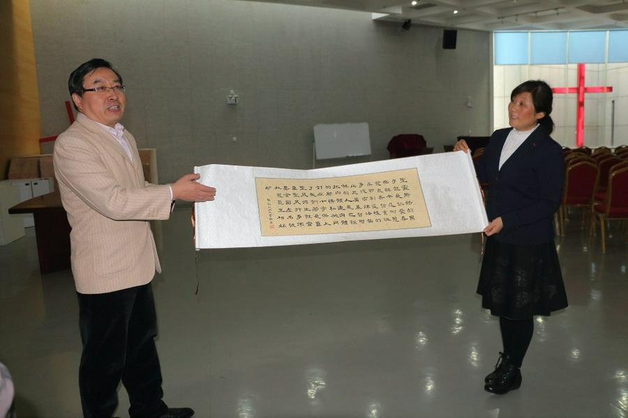 南京圣训堂为江苏省内最大教堂,可同时容纳5000余人同时聚会,于去年3月份落成开放,被评为南京新世纪十佳标志性建筑。南京市两会副会长刘德昌牧师接待了使徒堂一行,并向大家介绍了南京圣训堂的建造始末以及现在开展的圣工与各个团契情况。双方互送礼物并合影留念。此次南京出行圆满结束。