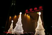 12月7日晚6点,北京基督教海淀堂的圣诞树点亮活动在赞美声中拉开序幕,广场上3棵圣诞树依次点亮。