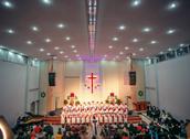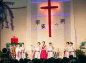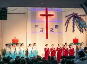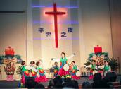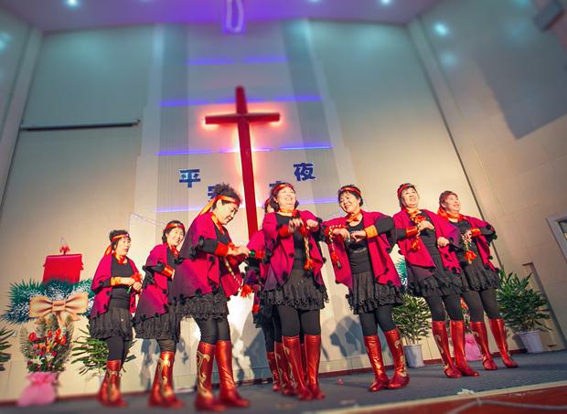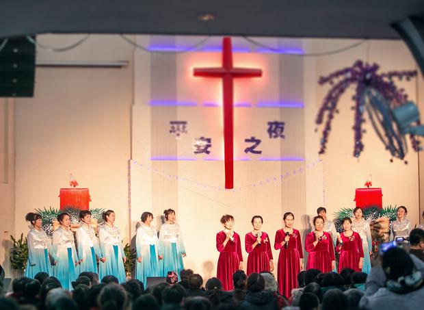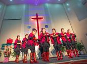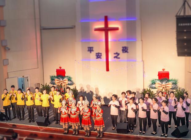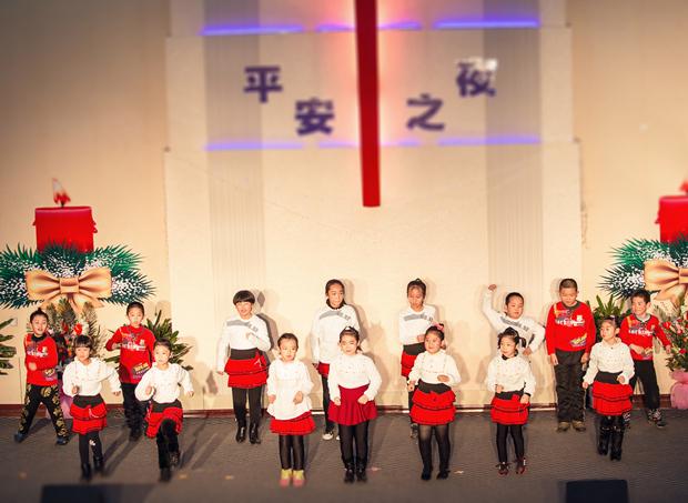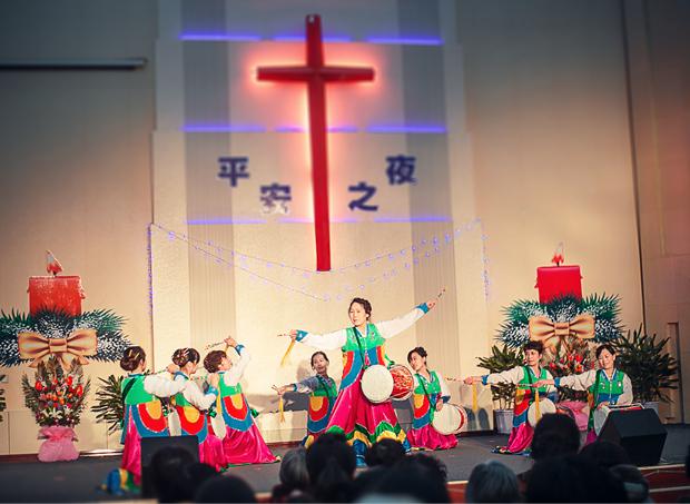在辽宁盘锦基督教两会中心堂的平安夜晚会上,有风趣可爱的儿童街舞,有成员在65岁以上的“不老之花”表演的舞蹈《万马奔腾》,有自己手工做成的长鼓的长鼓舞,还有主日学小朋友们表演的节目。在晚会上,朴桂峰牧师分享了《因他的降生》这一话题,他谈到了对每一个人都至关重要的三件事:生、存在和归宿。