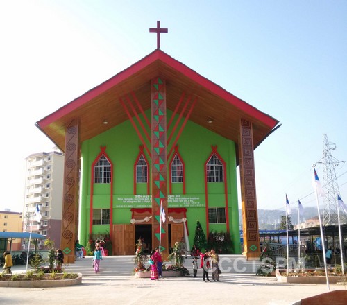 2014年12月24日至25日,在祖国西南边陲的云南省德宏傣族、景颇族自治州瑞丽市,来自全市及周边各地教会的景颇族、傈僳族、傣族、汉族的弟兄姊妹2000多人满怀敬畏之心,祈祷感恩、载歌载舞,庆祝2014年圣诞佳节和瑞丽帕色基督教堂暨市基督教两会会址竣工落成。