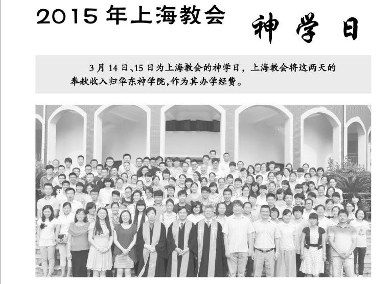 上海教会2015年神学日定于3月14、15日两天。这两天内,上海教会的奉献收入全部归于华东神学院所有,作为其办学经费。