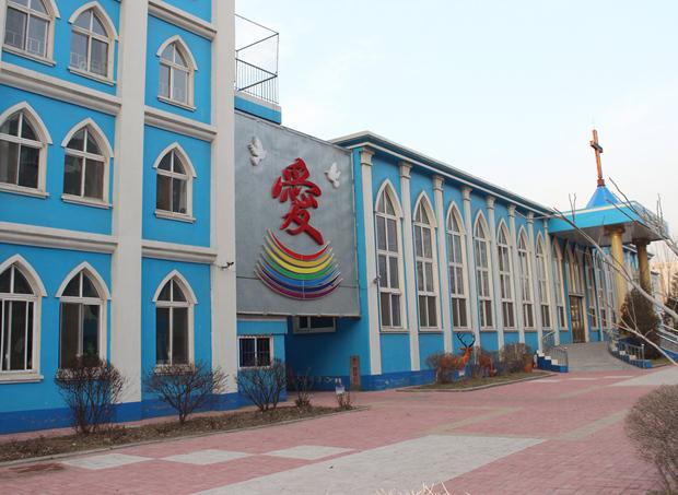 礼贤爱心养老院的存在离不开礼贤基督教会,二者同住一个大院,一个浮在“彩虹”上的大“爱”字将养老院与教堂紧紧相连,据说,当夜幕降临后,会发光的“彩虹”和“爱”最为漂亮。