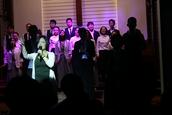 整场特会共分为赞美、敬拜、证道、回应赞美四个部分。几位身着绿裙白衫的姐妹首先上场,青春的气息随即而来。其余弟兄姐妹服装则以黑白西服为主,在三位带领人的带动下,《这里有荣耀》、《从这代到那代》,一首接一首,带领大家歌颂赞美声不停,《弹琴歌唱赞美你》的歌声响起时,大家又唱又跳,向神献上赞美。
