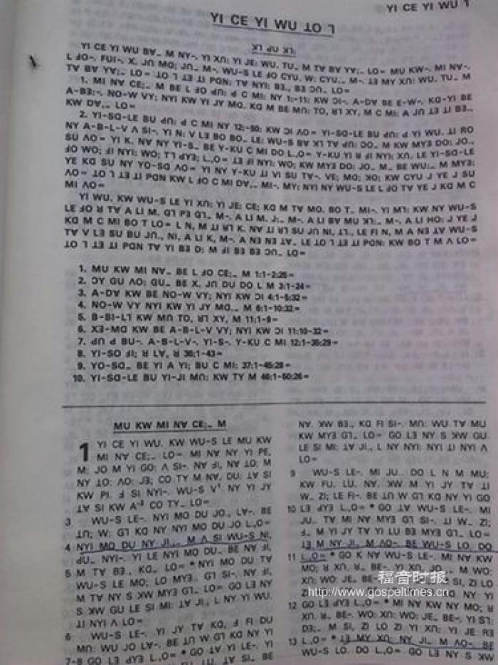 丰牧师告诉福音时报,目前傈僳文《圣经》有五、六个版本,而国内傈僳族信徒主要使用的是1986年翻译的版本。