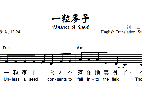 目前,已上传6首单曲的曲谱,分别是《藏身在你的怀里》、《陪我走过春夏秋冬》、《一路靠着祂(耶稣袮的名)》、《一粒麦子》、《弟兄和睦同居》和《有一道河》。