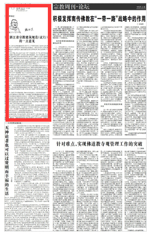 最后想说的是,作为政府法规,《规范》运用了大量宗教术语,不仅为一般社会大众所生疏,就是资深的本宗教人士也不甚明了。如佛教建筑中要求有“僧白处”,佛教活动场所的“现代布局可以正气为原则”,这些术语和描述都应该有专门的解释,以利实施。