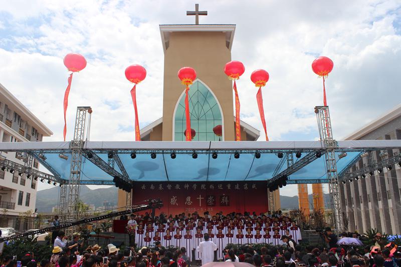 5月15日上午,云南省基督教神学院于新校区举行了拆迁重建落成典礼,来自中国基督教两会,云南省基督教两会,云南省民族宗教事务委员会和省委统战部等领导,以及四川、贵州基督教两会代表,美国、香港浸信教会和香港神召会代表,云南16个地州基督教两会同工、信徒和云南神学院师生等共1000多人参加。