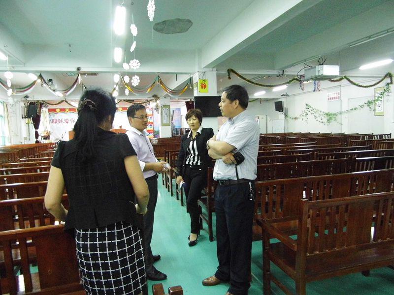 王牧师一行,参观了开发区基督教堂,在交流中,孙红雷老师介绍了教会的发展,用PPT观看了十年前的介绍,并把教会发展的现状也介绍随行人员;王牧师一行具体的在教会的诗班工作上作了细致的询问交流,对开发区教堂的诗班班委很有兴致的学习交流(诗班的选举,班委的架构,班委的事工安排),王牧师感到很是满意,他们诗班有近80人左右,就一个班长,很多事不好做,愿意回去以后也要成立诗班班委,建立诗班制度。