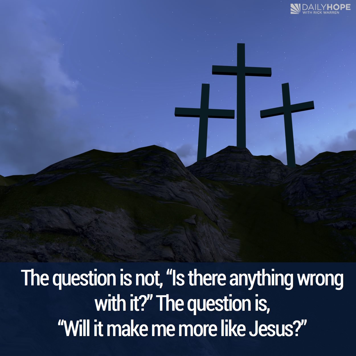 这些事情是恶事吗?当然不是。是坏事吗?也不是。但是问题不是在于“这件事有什么错”,而是在于“它会让我更像耶稣吗”?