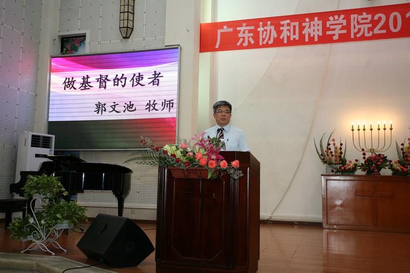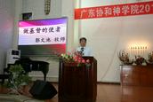 开学典礼后,9月1日下午以及晚上,广东协和神学院举办了2015-2016学年度开学培灵会,邀请香港播道神学院院长郭文池牧师就《牧者与雇工》、《做基督的使者》两个主题进行分享。