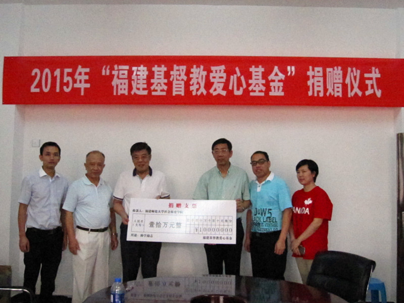 9月11日,“福建基督教爱心基金”捐赠仪式于福建师范大学社会历史学院举行,为该学院品学兼优、专注于研究基督教问题的研究生和家庭困难研究生完成学业捐助10万元。