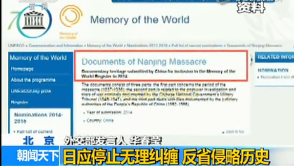 据联合国教科文组织发布消息称,中国申报的《南京大屠杀档案》被正式列入《世界记忆名录》,不过日军强征“慰安妇”档案遗憾落选。