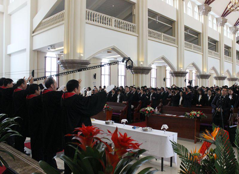 2015年10月20日上午,沈阳的天比以往突然冷了不少,然而位于棋盘山上的东北神学院却比以往热闹了很多。因历届校友和众教会弟兄姊妹也来到这与东北神学院全体师生一同为磐石国际礼拜堂的落成向神献上感恩礼拜。