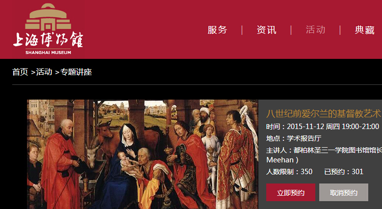 此次讲座参加人数限制在350人,欲参加者可通过上海博物馆官网预约.