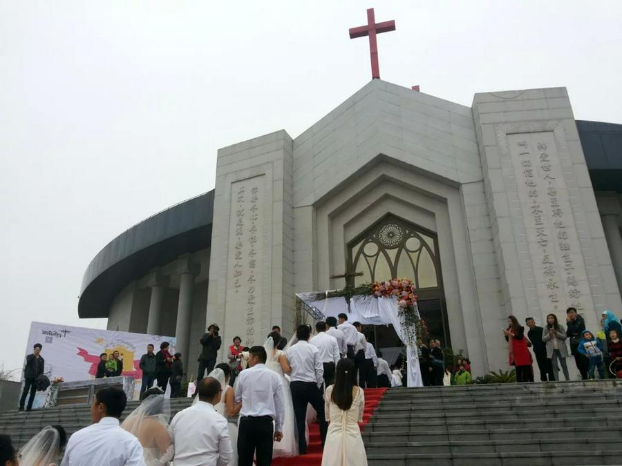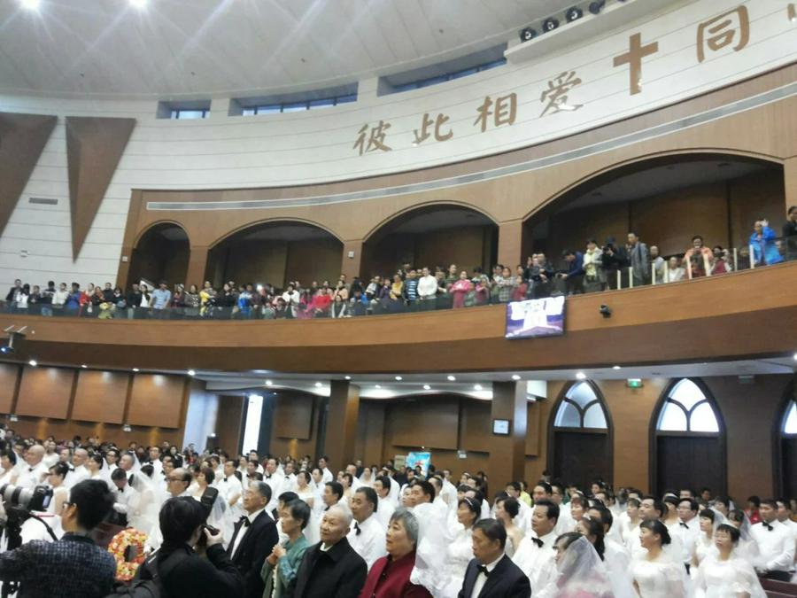 11月8日,江苏省镇江市宣德堂举办大型金婚庆典活动,66对夫妻在教堂里彼此交换爱的誓言。这是镇江历史上首次举办的百人集体教堂金婚庆典,也是首次向非信徒开放的教堂金婚庆典。