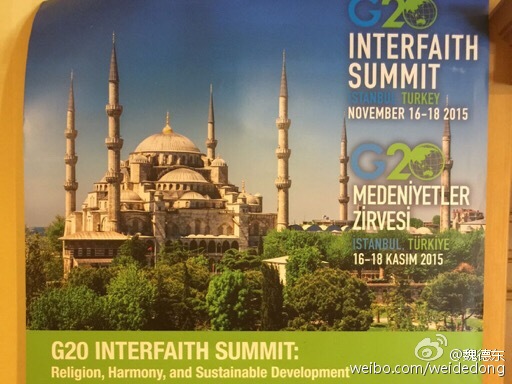 2015年11月16日至18日,G20信仰间峰会在土耳其伊斯坦布尔举行。作为G20峰会的一部分,信仰间峰会肇始于去年的澳大利亚布里斯班,现已作为G20峰会的常规分会延续下来。在时间上,今年的G20领导人峰会为11月15日至16日,信仰间峰会错后一天;在地点上,信仰间峰会避开了领导人峰会的安塔利亚,选择了700公里之外的历史名城伊斯坦布尔。