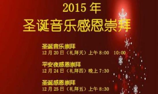 圣诞音乐崇拜:2015年12月20日(礼拜日)上午八点、十点两场;