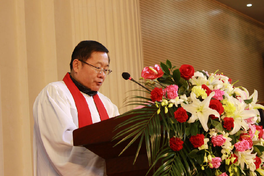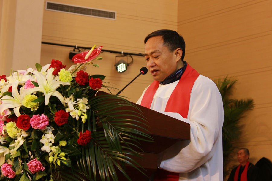 河南省基督教协会会长胡俊杰牧师为长江路教堂祝圣、祝福(图:福音时报)