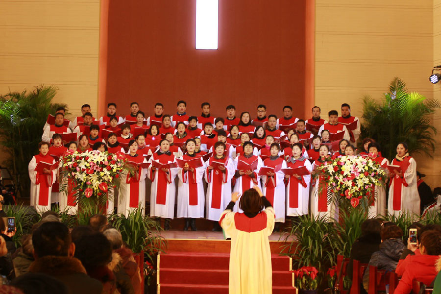 郑州市圣乐合唱团献唱。郑州市圣乐合唱团是郑州市八所教堂组建的一支团队,是郑州市基督教会对外交流的窗口,目前已成立七年。(图:福音时报)