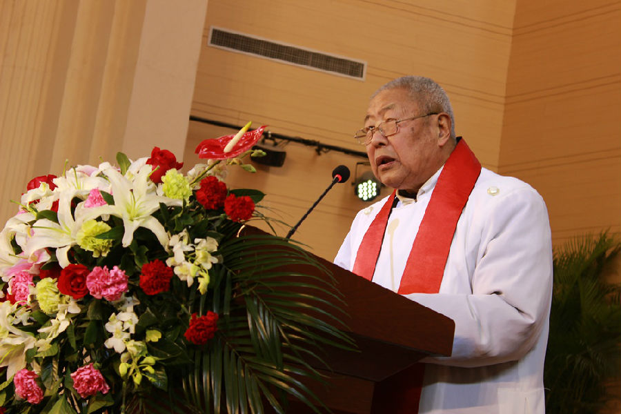 郑州市基督教两会会长阎书刚牧师主礼,宣布“郑州市基督教长江路教堂献堂祝圣现在开始。”(图:福音时报)