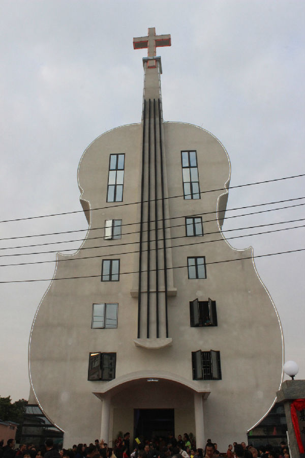 王传道说,让他吃惊的是,被划拨的土地上堆满了废渣和垃圾,污水横流,上空还有电线,这种状况曾让教会的同工一筹莫展。可是,经过祷告,王传道有了一个异象——在这废墟上建造一座小提琴教堂,让那里成为赞美之地,这曾让很多同工不解。但在王传道等人的坚持之下,2013年11月2日,盐步堂新堂奠基,2015年12月22日验收完成。不仅教堂信徒们高呼“赞美神”,就连之前不理解教会和基督徒的非信徒,也常常到小提琴教堂前拍照,赞叹连连。
