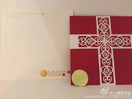 如今这句话也被印在了请贴上,请帖的封面也是大大的十字架。收到喜帖的刘畊宏不禁调侃道:“野马终于找到归宿,感谢上帝 2016喜事连连!”