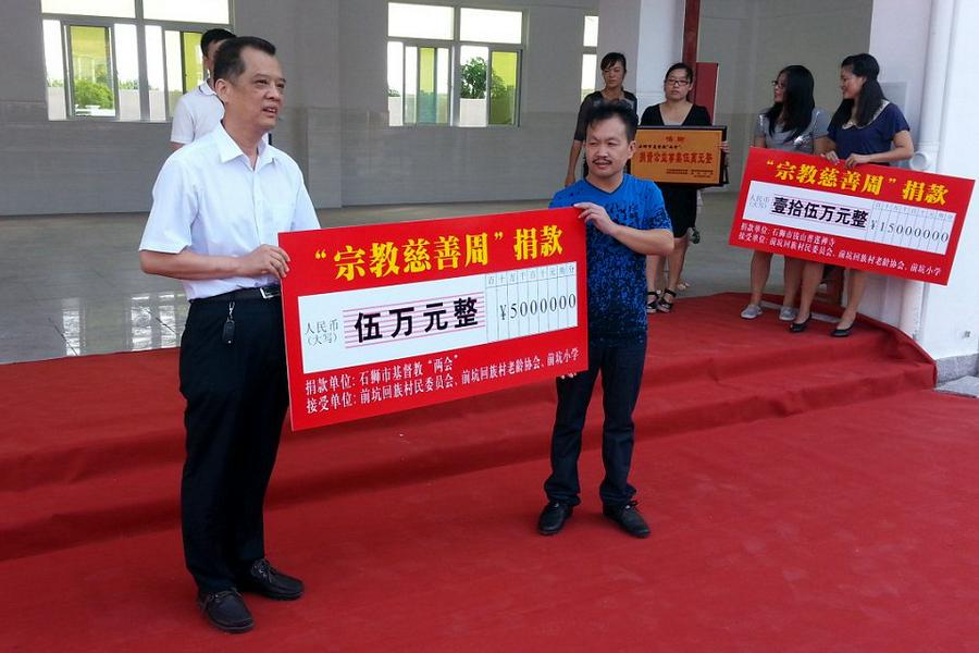 石狮教会还积极响应省民宗厅关于帮扶少数民族群众解决民生难题,关心少数民族群众的冷暖安危的号召,配合各级党委和政府为福鼎市桥亭及赤溪贫困村,福安畲族贫困村等地慷慨解囊,让少数民族地区的人民充分享受到党和政府对少数民族贫困村的关怀和社会各界对他们的关心。