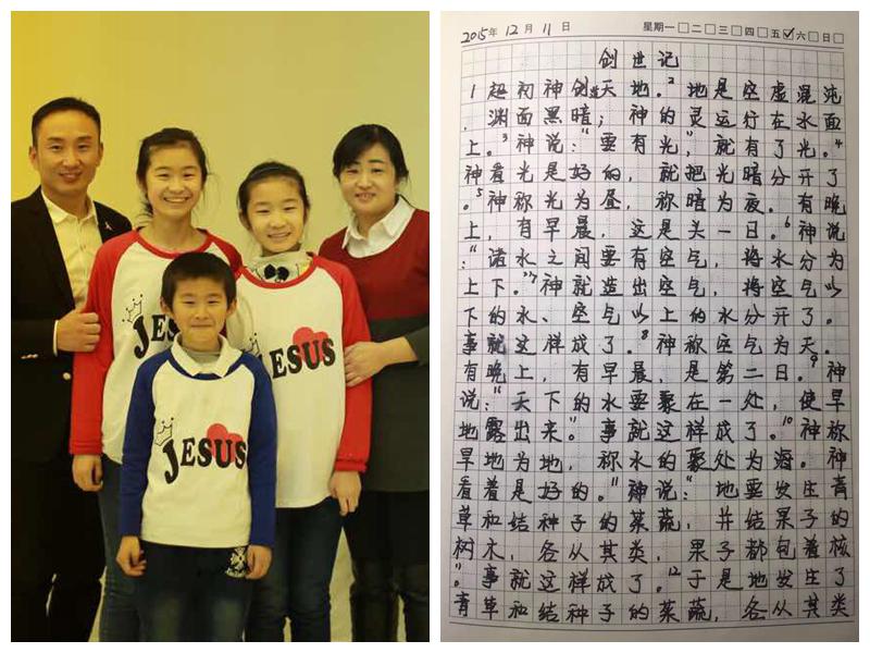 以前女儿看到爸爸在玩游戏时,会无奈地发出“爸爸又在玩游戏”的感叹,而现在女儿总是看到爸爸在认真地抄写圣经。李弟兄的妻子支持他的抄经活动,他的两个女儿也加入了抄写圣经的队伍。