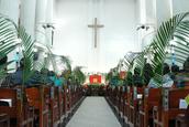 教会传统认为,这一天,耶稣骑着驴驹子荣耀的进入了圣城耶路撒冷,百姓们纷纷折下棕树枝铺在路上欢迎救主的到来,在同一周的周五,也是这群人高喊着把耶稣钉上了十字架。为了纪念耶稣的十字架,基督徒们把这一周称为受难周,这个主日称为棕枝主日。于是燕京神学院教堂有了上面这些特别布置,为的是默想主的十字架。