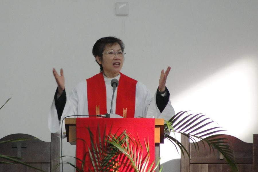 本次主日崇拜由神学院院长高英牧师证道,她先介绍了棕枝主日的来历,接着引领会众一同默想耶稣基督的十字架,她指出:耶稣在十字架上承受的不仅仅是肉体的痛苦,更让他心痛的是门徒们的背叛和不理解;耶稣在客西马尼园流着血汗祷告时,门徒们却都睡着了。