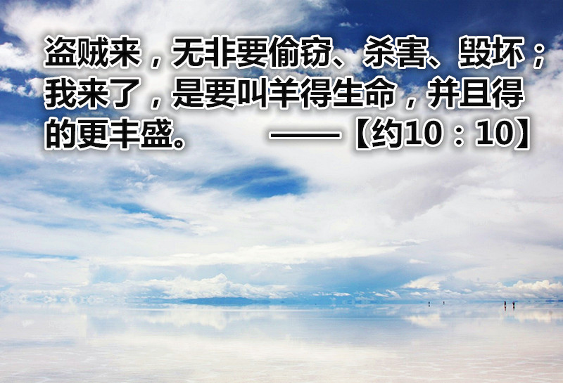 约翰福音10章10节中,耶稣说:“盗贼来,无非要偷窃、杀害、毁坏;我来了,是要叫羊(或作“人”)得生命,并且得的更丰盛。”分清牧人和豺狼的工作方式,选对当跟从的声音。